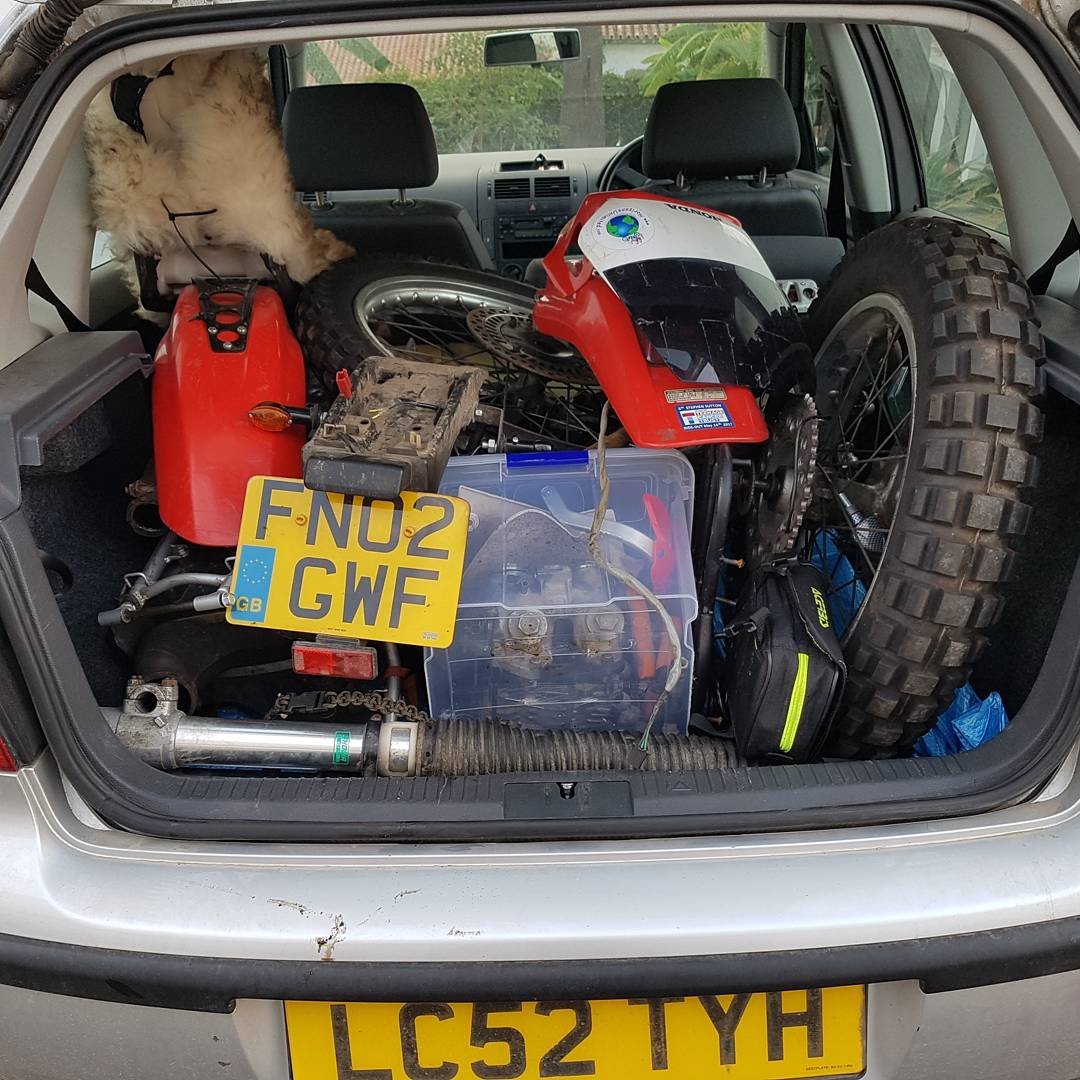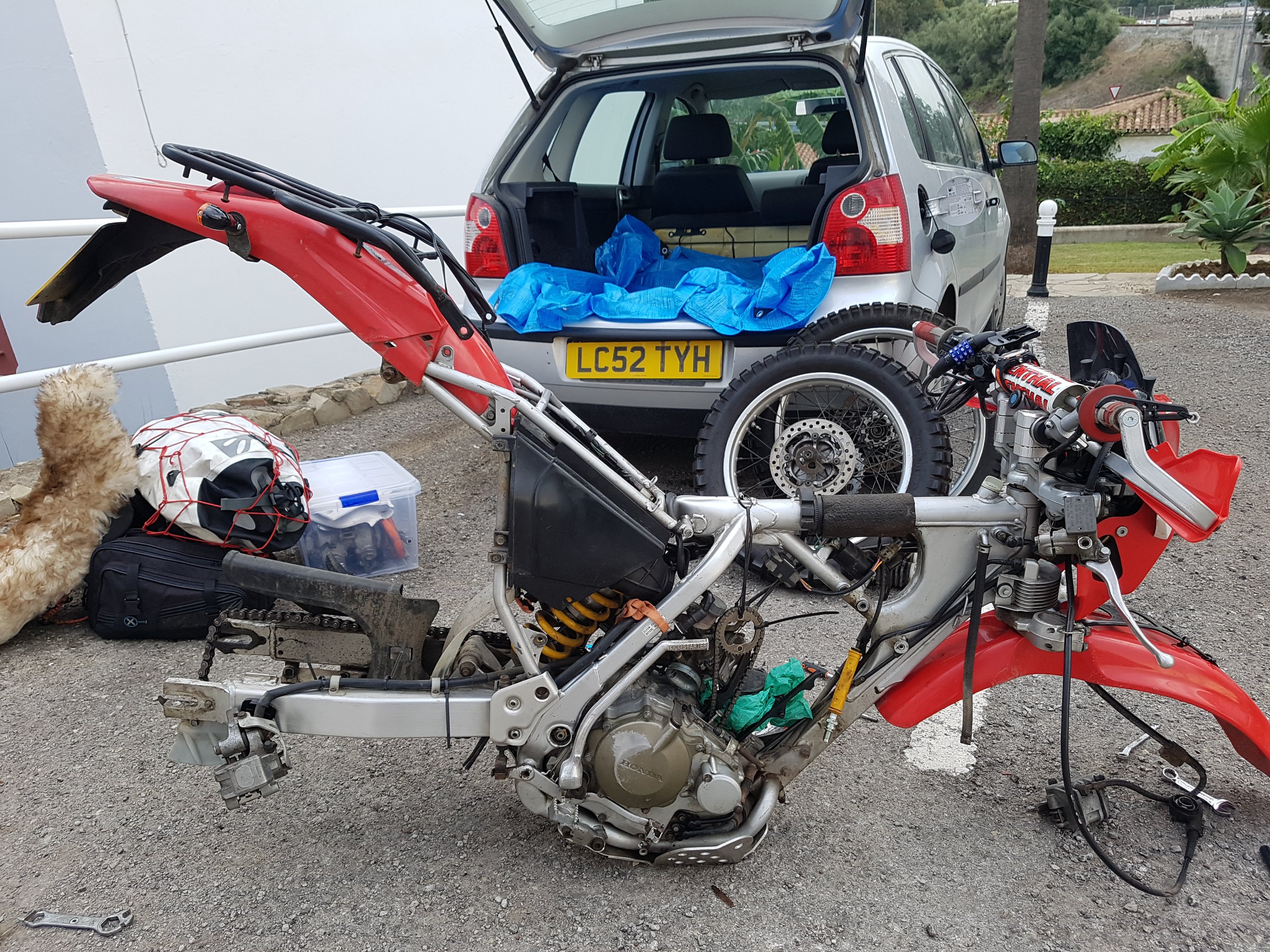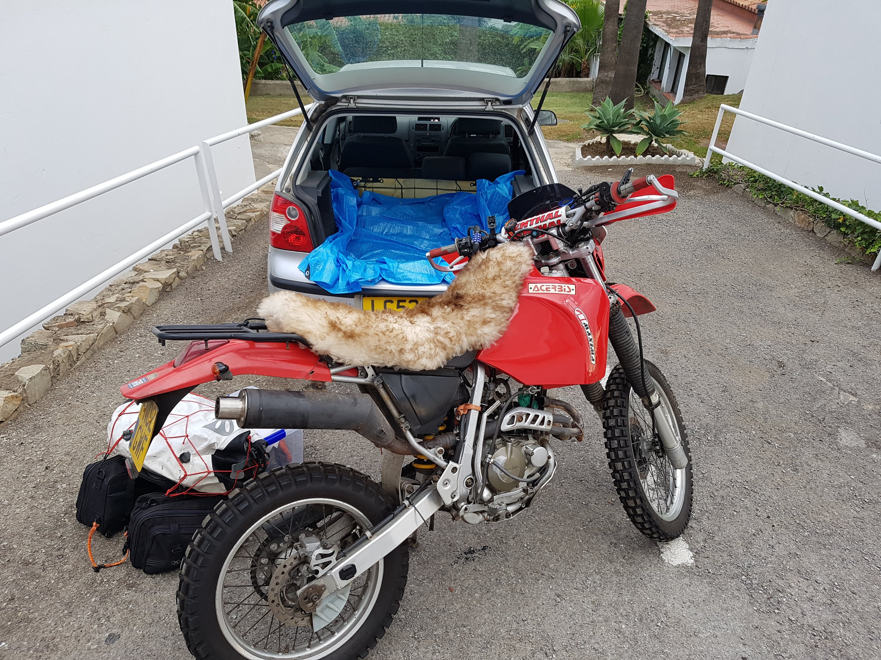 Back on the mainland I made to the Rio Grande to be reunited with DJ the next morning, however Ian (VW motorhome guy) had contacted me to say he was in Marbella. We had coffee at his new site before I returned to strip the bike and load it in the car. I was pretty concerned that it wouldn’t fit.