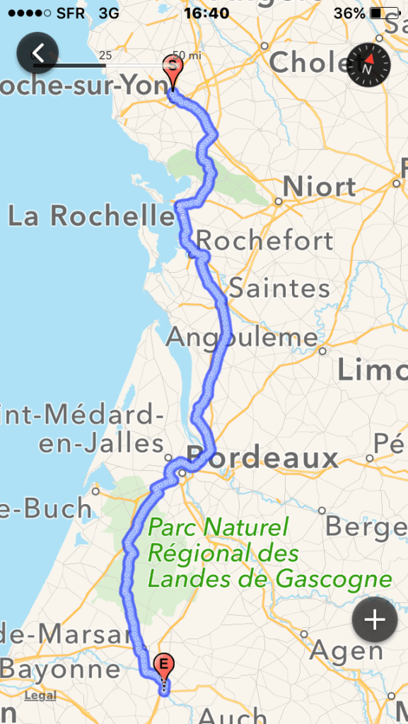 So I was up early and straight on the road, ok it was 9am and then I had the full breakfast before packing and setting sail. I had spent the night in a F1 hotel at La Roche Sur Yon. It was just my bad luck that a whole troop of batten twirlers were staying there and were practicing late into the night. I had to stay, it would have been rude not to. Anyway on with the journey. It was already hot by the time the bike was loaded and on the road. Again I chose to make miles rather than sight see. Although I did drop into La Rochelle, another holiday destination from my youth. Funny how things don’t seem the same 35 years later! It was very built up and I never did find the beach that we camped on as teenagers. I headed south towards Bordeaux, the wine region. There were plenty of grape vines to prove I was in the area and for some reason a number of roadside melon sellers. I don’t know much about the French but I certainly didn’t know they do melon. I do know that their housing confuses me. It all looks so old and everywhere has shutters. Most places look medieval but cared for. I think I like it. Obviously I can’t show you pictures because I’m still a newbie at this blogging app thingy.
