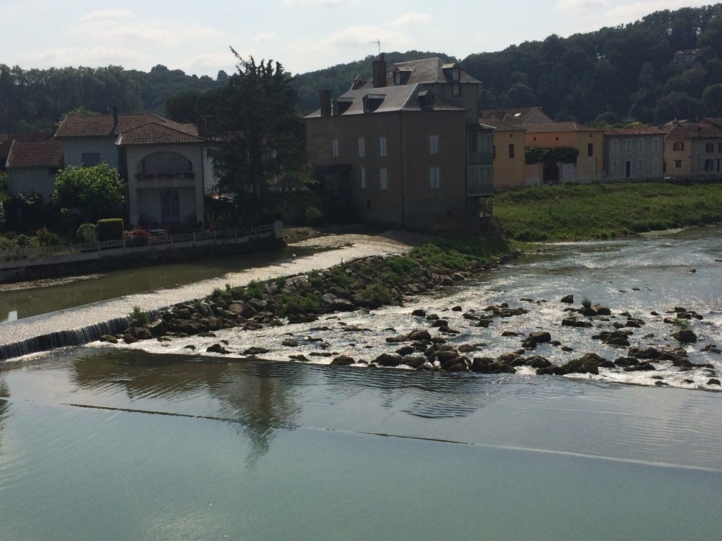 Today’s roads were long and straight, I got so bored I even filmed some corners when they happened. Having said that I made good progress with another 280 miles bagged. I was heading for Pau but I came to Aire Sur L’adour first. As I turned into the town I crossed a bridge over a small river. It was very picturesque, and then I saw a camp site right at the edge of the river. I had to stop there. “Un personne pour un nuit avec un tente si vous plait mate”. It worked and a few minutes later I was ensconced by the rivers edge. Ablutions done I went to the bar in the square and here we are up to date.