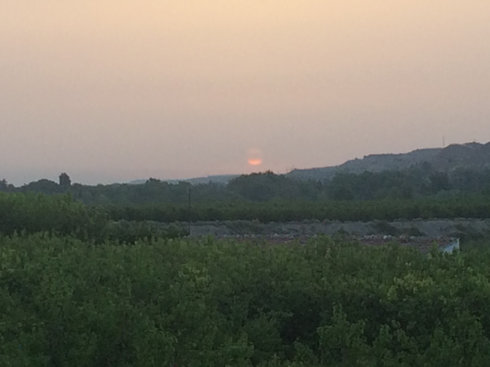We were up and on the road by 6am. We rode out of Caspe on the same road and past the accident site both of us with our own thoughts. The Sun was starting to rise and we were treated to a hazy start to the day.