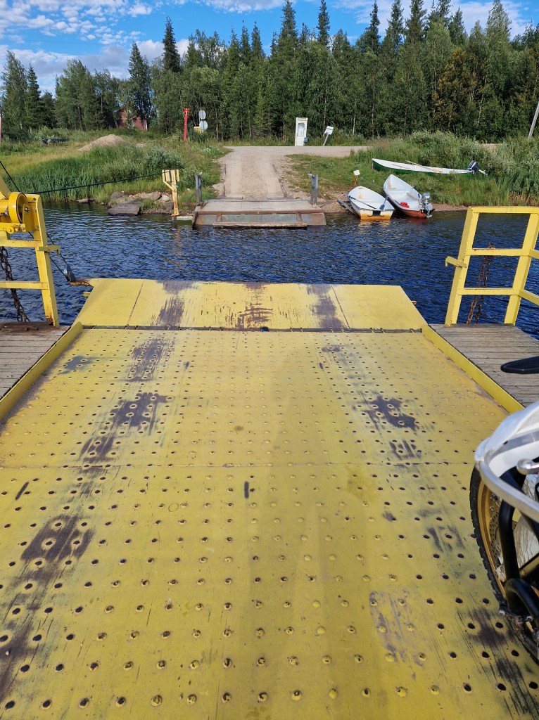 All of a sudden the track took a right turn towards the river and a ferry boat. I was effectively stuck in a small village, Lainio. You need to take the car ferry across the river. The ferry was there but no driver. I went to the office and read a sign on the door. Basically if there’s no driver, just take the ferry yourself. I read it again and again, yes it really says help yourself. It also says if the ferry is on the other bank then take the little outboard engined boat to go collect it to make your crossing. Luckily it was on my side. I rode on and waited for someone to come out shouting, but nothing. I worked out how to lift the ramp and without keys for the motor its a case of haul the steel cable yourself, suddenly I was at sea. I was videoing the whole thing and didn’t think to take photos. Maybe 15metres out and a quad bike turned up at the boarding point I had just left. I called out to the guy “Do you want me to come back?” I was waiting to be told I had stolen the towns ferry and would be charged with piracy, the reply “Oh yes please that would be very kind”. It took quite a bit off stopping but it did and soon I was back at the Quay, lowering the ramp like one of P&O’s finest. I mentioned to Mike that it would be easier with two, he said it would be much easier as he has a key for the engine!