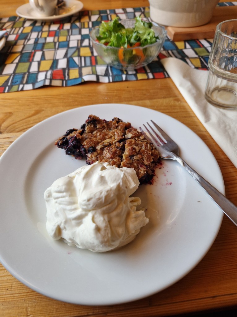 The guy who runs the place came to clear away and we got chatting. He showed me photos of other TET users including a couple of guys in a tuktuk. I explained how great the food was and he immediately went to the kitchen returning with freshly made blueberry pie and home made cream. He told me he had picked the berries that morning.