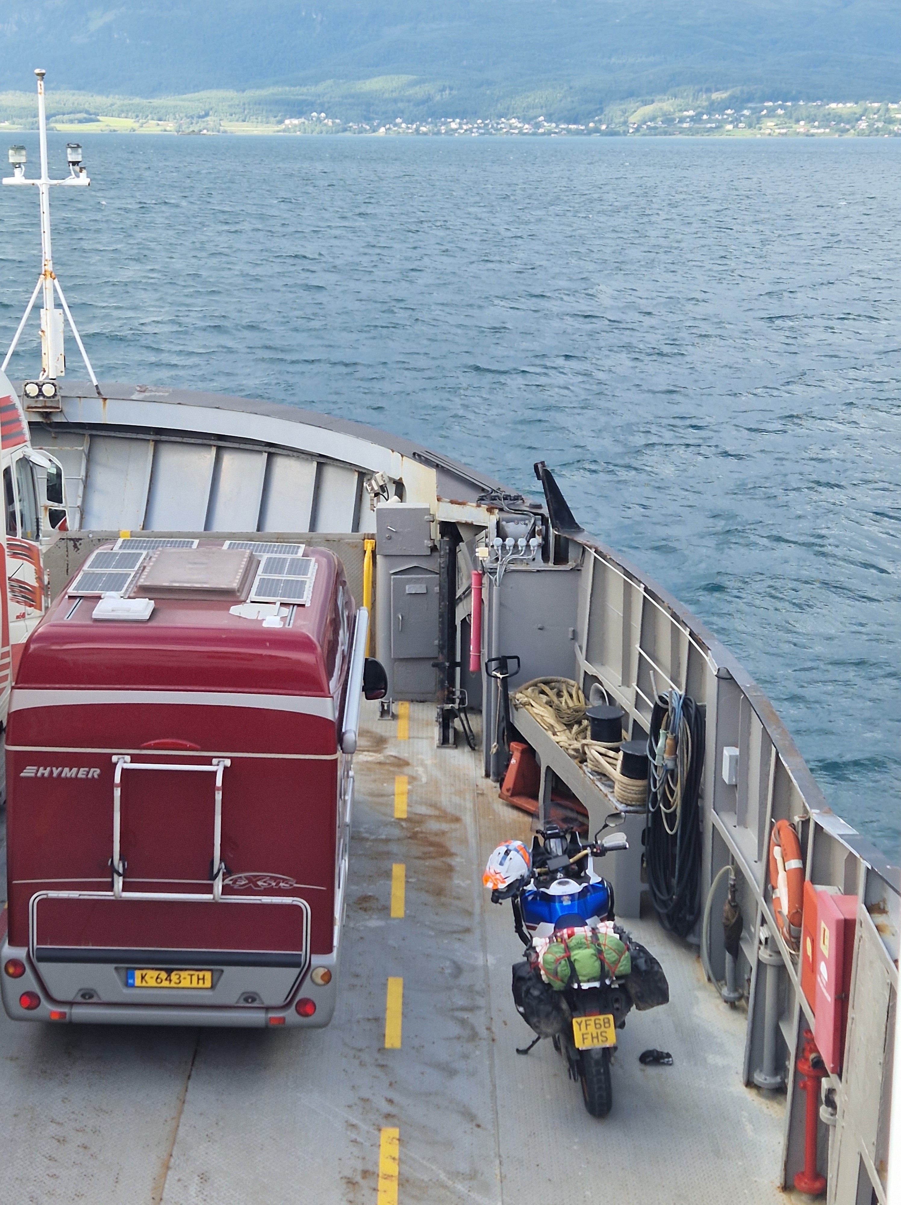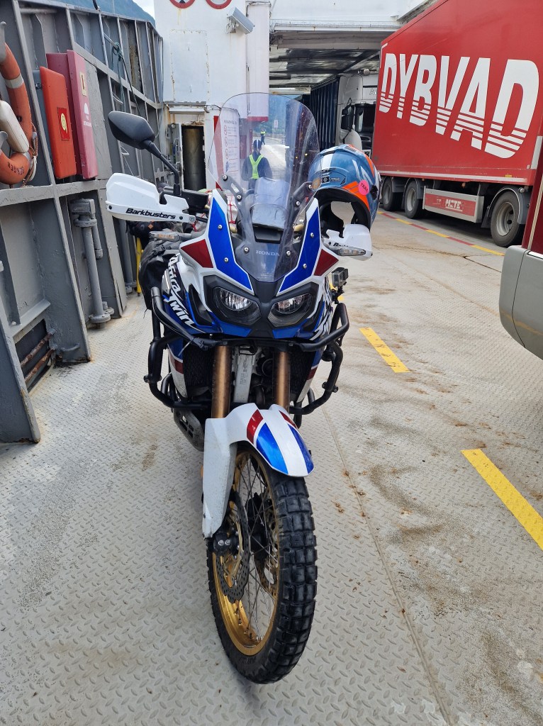 It was 8am and Id missed the first two ferries. I got myself ready, wished Sebastian a safe journey and rode the 200m to the ferry, parking next to a red motorhome in the queue. The next moment Jess appeared next to me. He had got new tyres and left Ettiene at the tyre shop.
