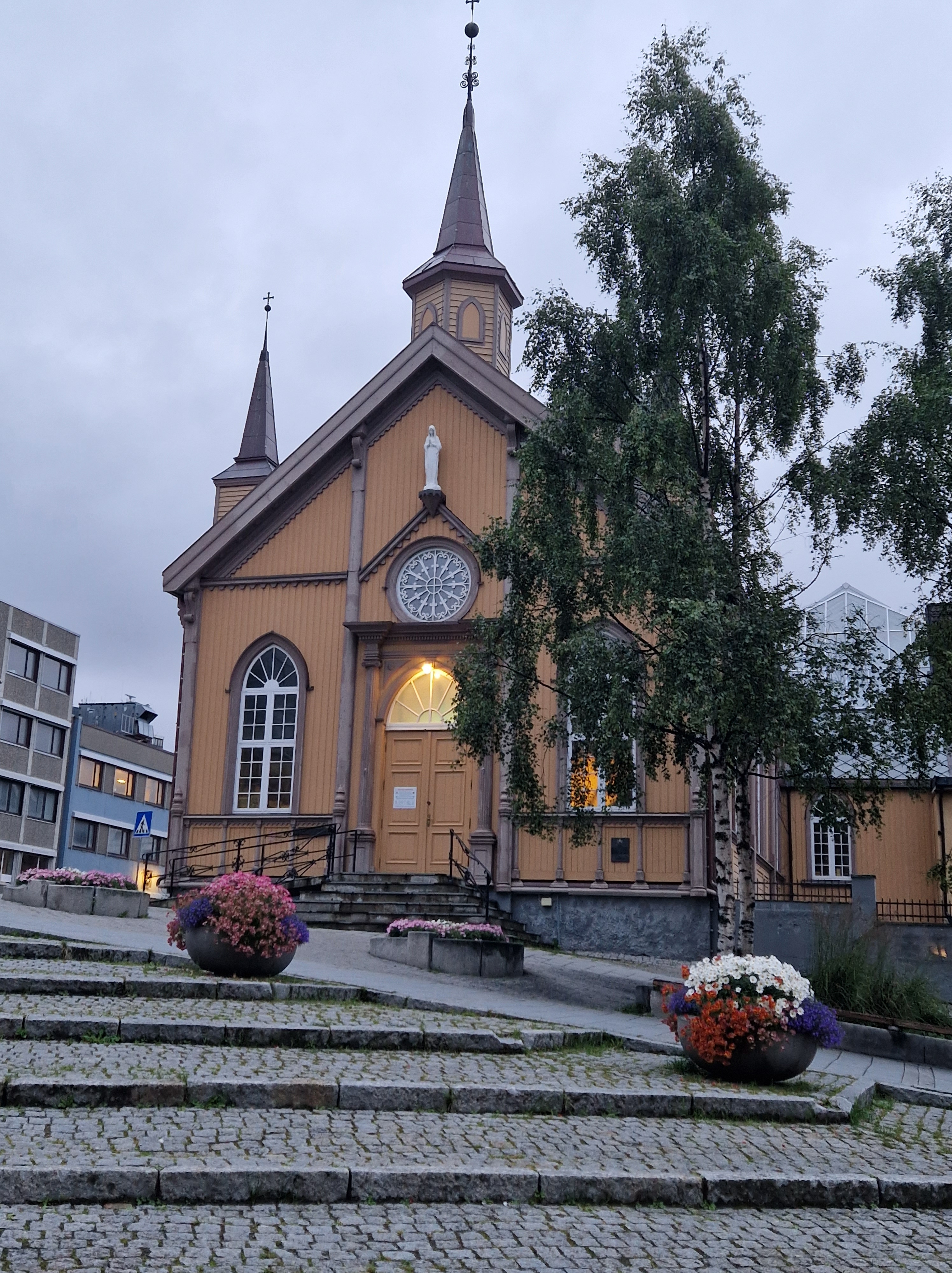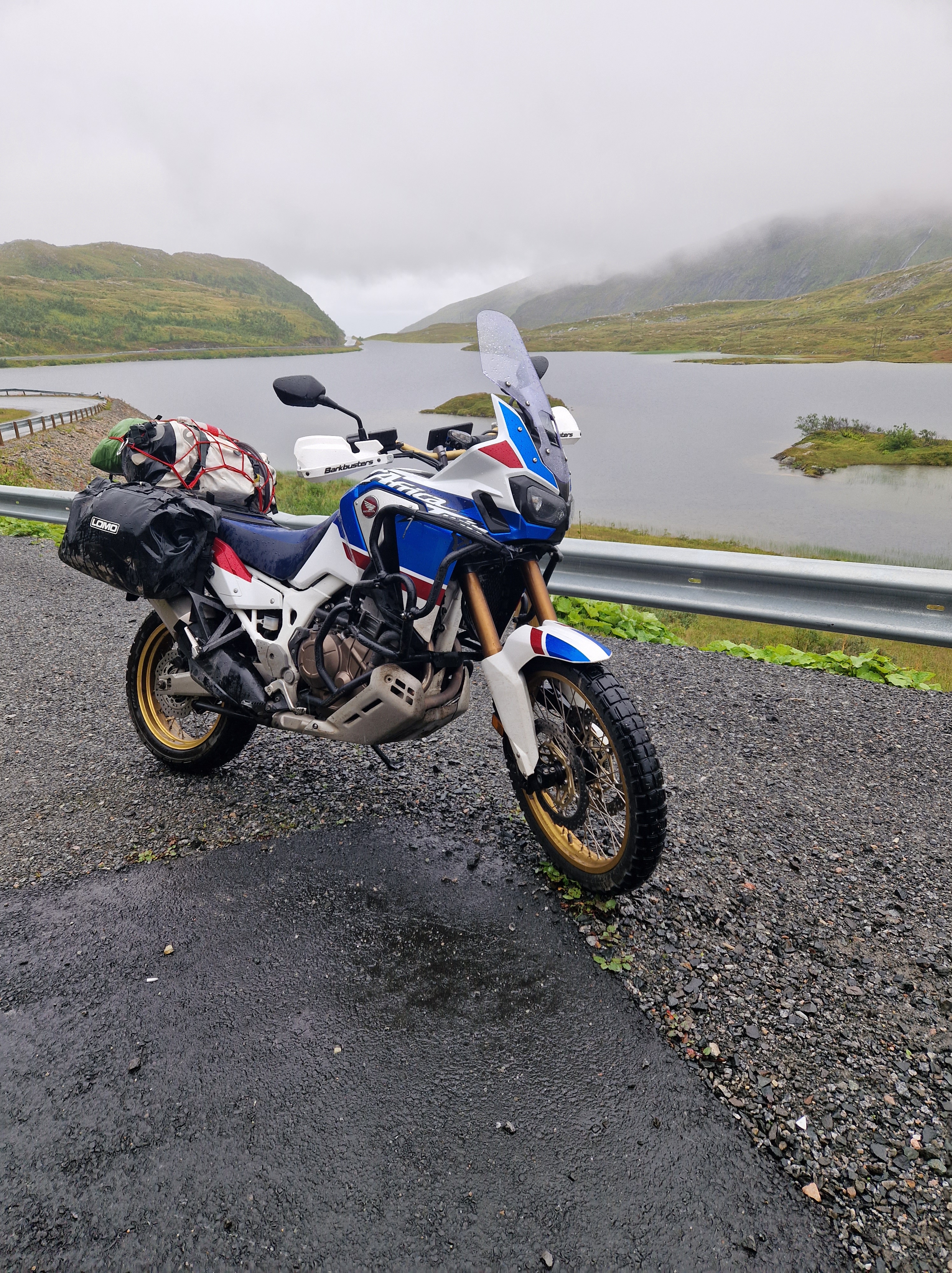 Jess showed me a parking place he was going to spend the night and I said I’d meet him there. I rode off first and headed the short distance to Tromsø. It was heaving with rain and I decided to park up and find a place to dry out and eat. Hey look a car park and an all you can eat pizza place. I was sold, obviously. It was mid day and the buffet finished at 3pm. I put my gloves on the heater and all my wet gear on spare seats at my table overlooking the harbour and my bike.