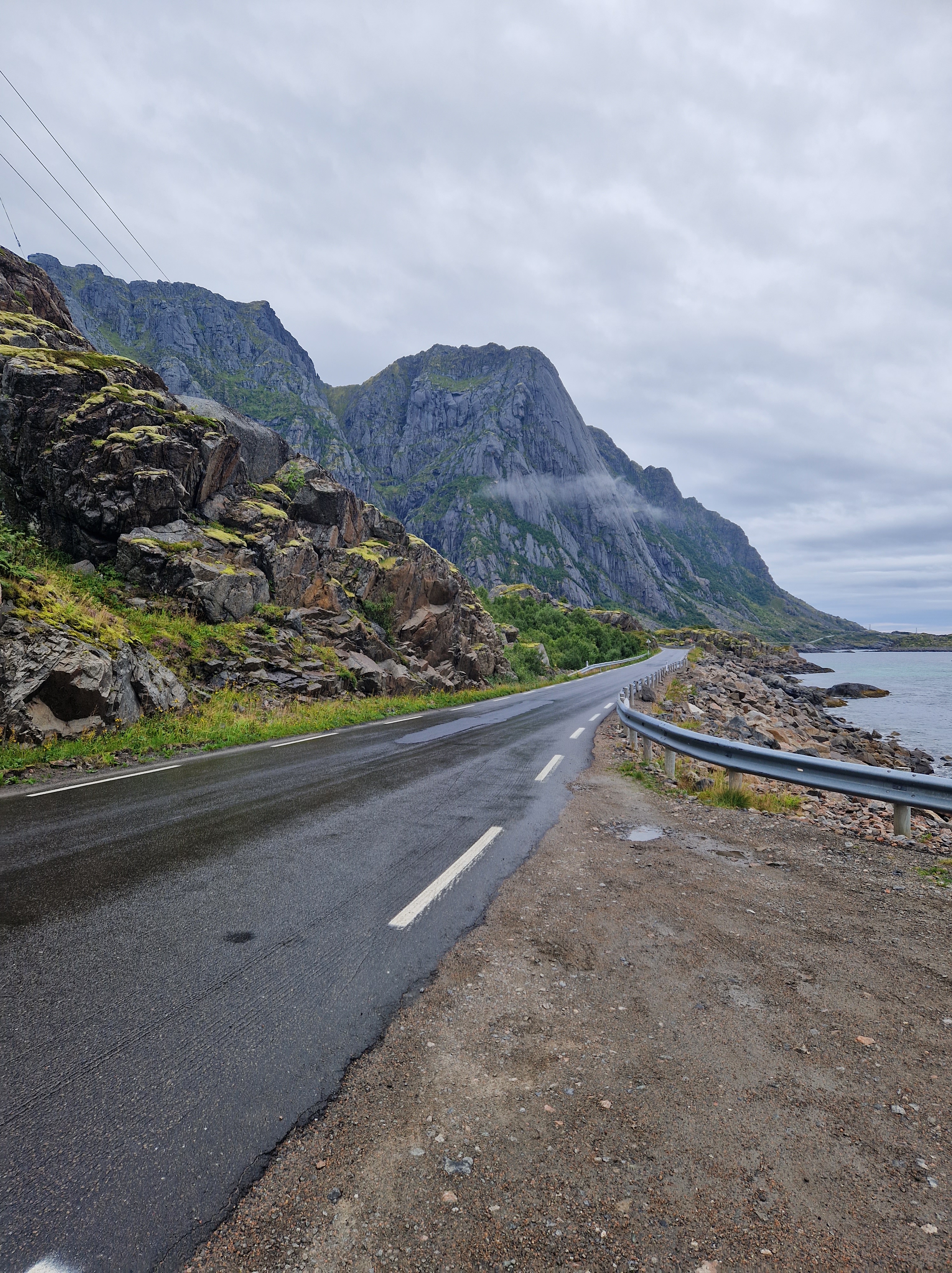 I spoke to a Swiss couple who were on a cycling holiday. They were fed up with rain and were running low on money after both got a stomach bug and had to stay in a hotel for a week. They were headed to the airport to go home. I was headed for Henningsvaer. However another navigational error meant I went straight past and had to backtrack 20km.