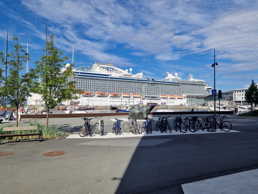 Having seen the old town I walked some of the newer area where expensive retailers had fabulous shops. There was a cruise ship in harbour and the town was filling with the occupants of this 19 story bohemeth.