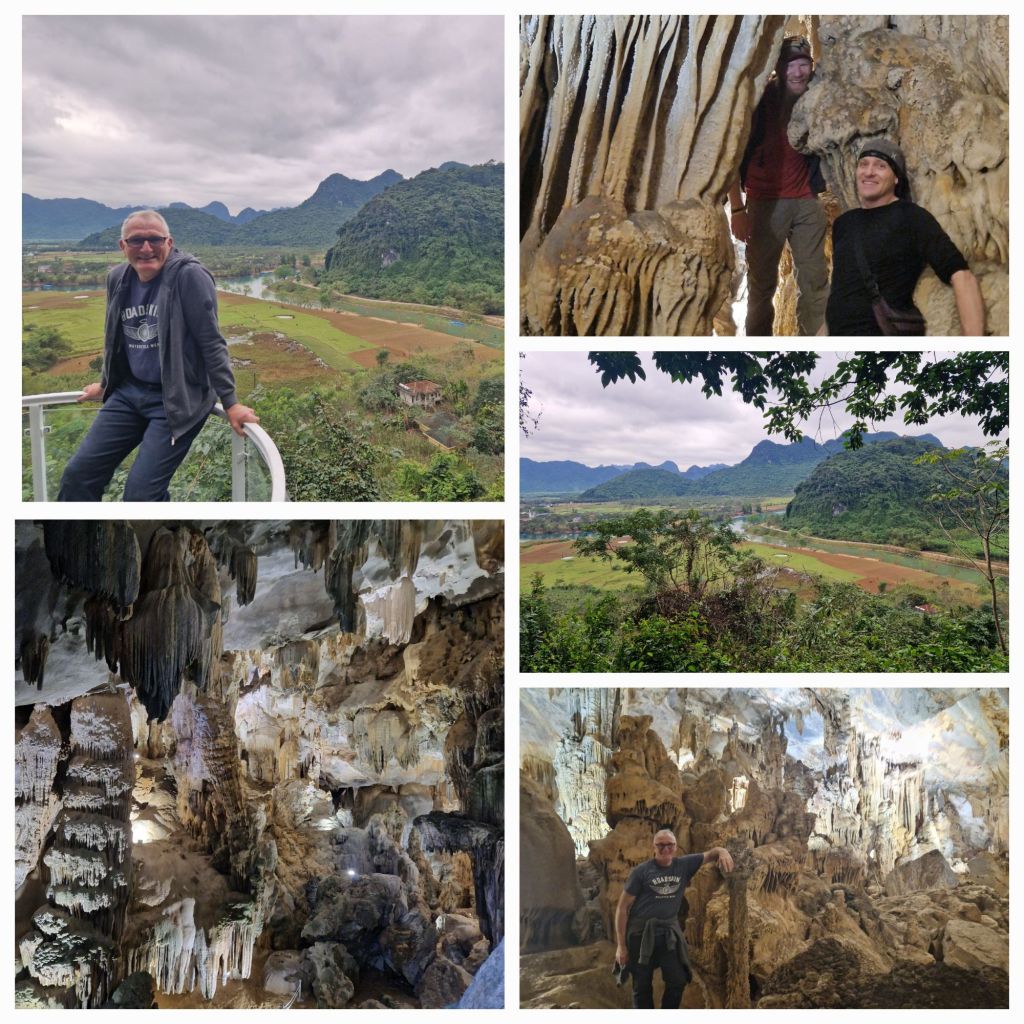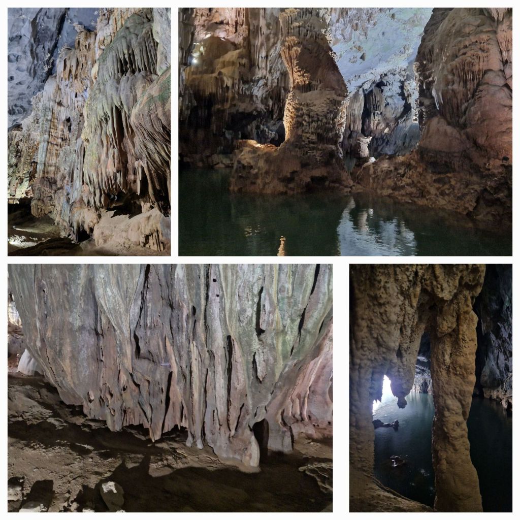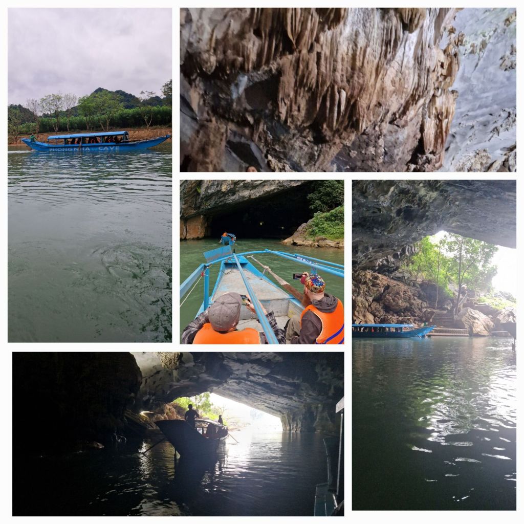 Phong Nha is situated in the Ke Bang National Park and is home to Tigers, Black bears and elephants, as well as spectacular limestone casts amongst the towering mountains. The caves were only discovered in the 1990’s and turned out to be some 37km long. The lower cave entrance is big enough to take the boats used by our guide. The stalagtights formed of various elements contained in the dripping water have built up over millions of years.