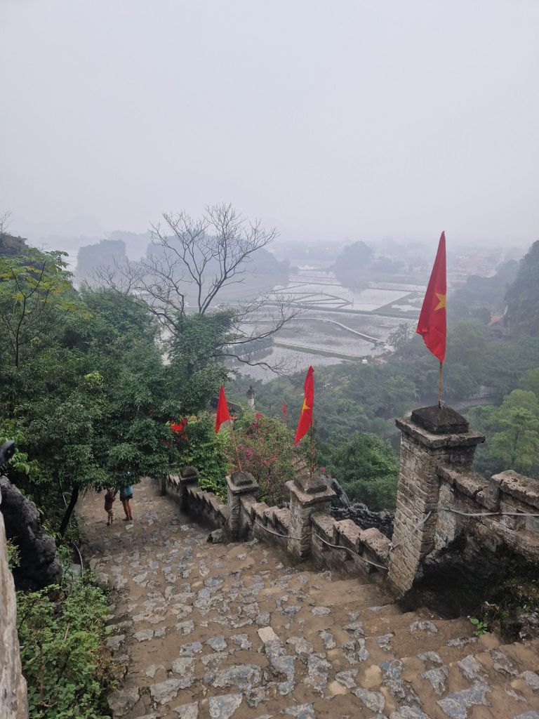 Well I had every intention of going to Mua Cave in the morning. Firstly I got up late with a bit of a dehydrated head. Breakfast was a bit rubbish in the hotel. So I packed all my stuff and vacated the room. Leaving my bags in reception I went to get coffee. I decided to stay another day as there are some wonderful sights but not with the visability we have today. Mua Cave is under the dragons stairway that leads to the top of a khast with breathtaking views, only not today. I quickly booked a bamboo lodge close to the cave so I could get up early and get up there, hopefully in the dry, before heading off to Hanoi.