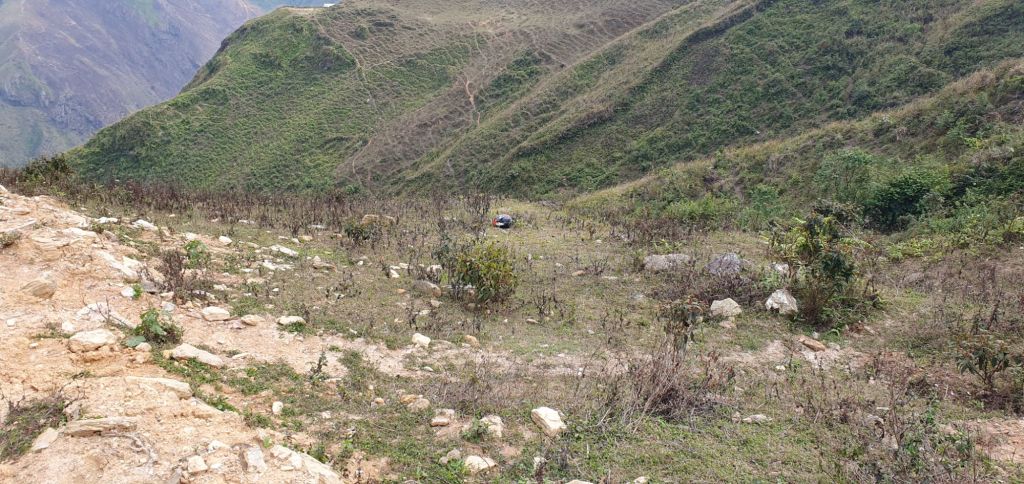 Next was a climb with two hairpin turns. I considered removing all the luggage, but I wasn’t up for the walk back to collect it all. I braced myself and fired Lilly at it in first gear. By the first corner I was feet down and pushing but it wasn’t enough and despite trying to slip the clutch to build engine revs, it was too much and she cut out. I could barely hold her upright. I waited for about a minute before trying again. Somehow we made it but again I was shattered and had to rest. I laid down for a few minutes before trying again but it was too soon, so back down I went.