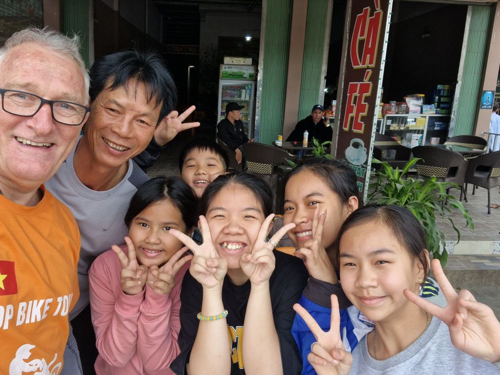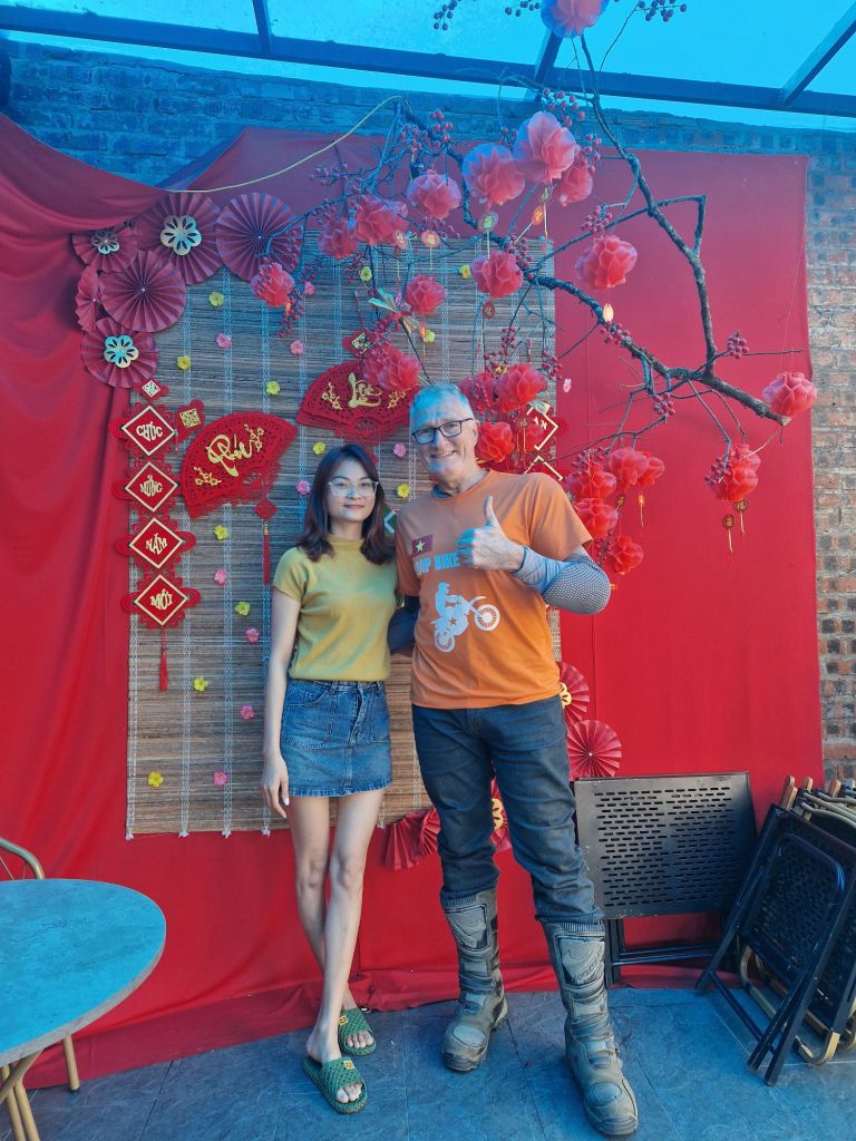 Later in the day, and fed up of endless knock backs from Honda shops, I stopped at a new Coffee shop. It stuck out as a new build in an otherwise typical Vietnamese town. The owner said I was her first tourist customer, so we had a selfie.